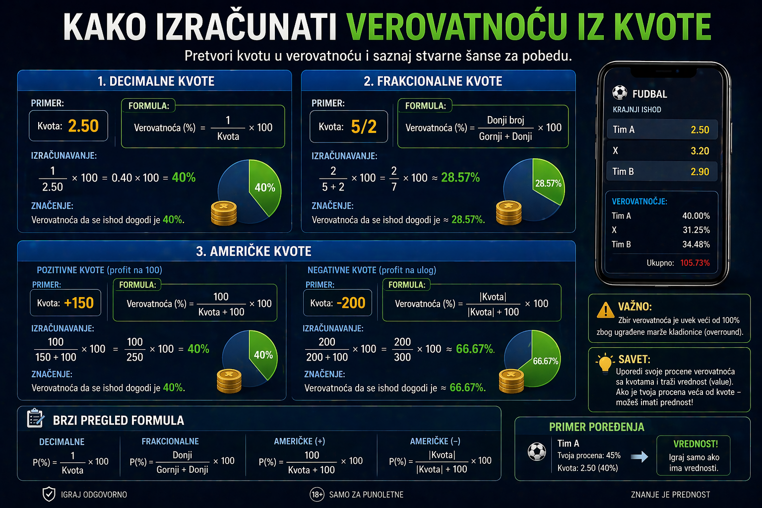 Razumevanje verovatnoće iz kvote je jedan od najvažnijih koraka ka pametnijem klađenju.